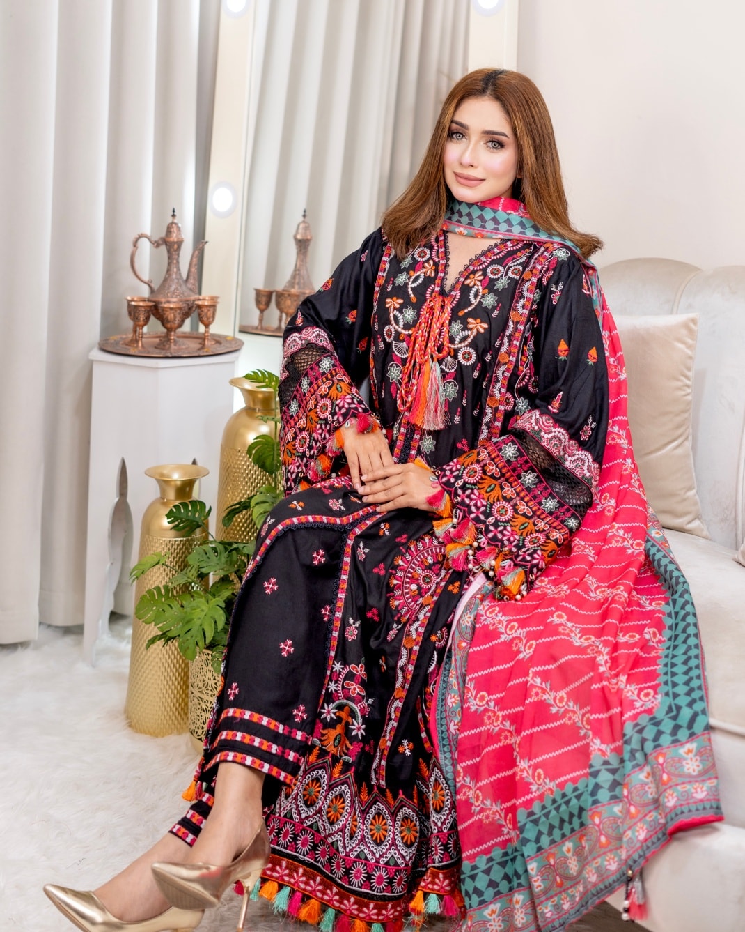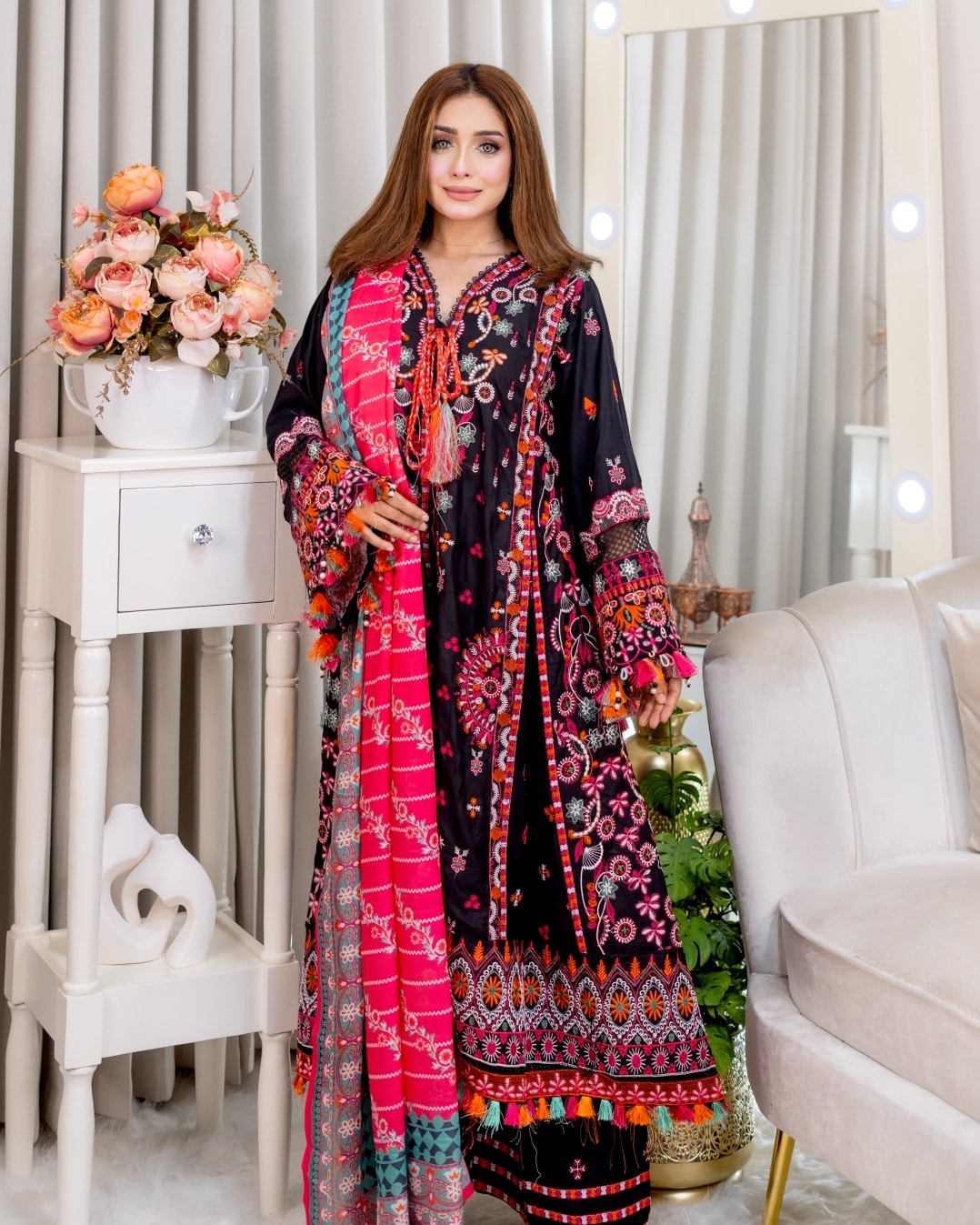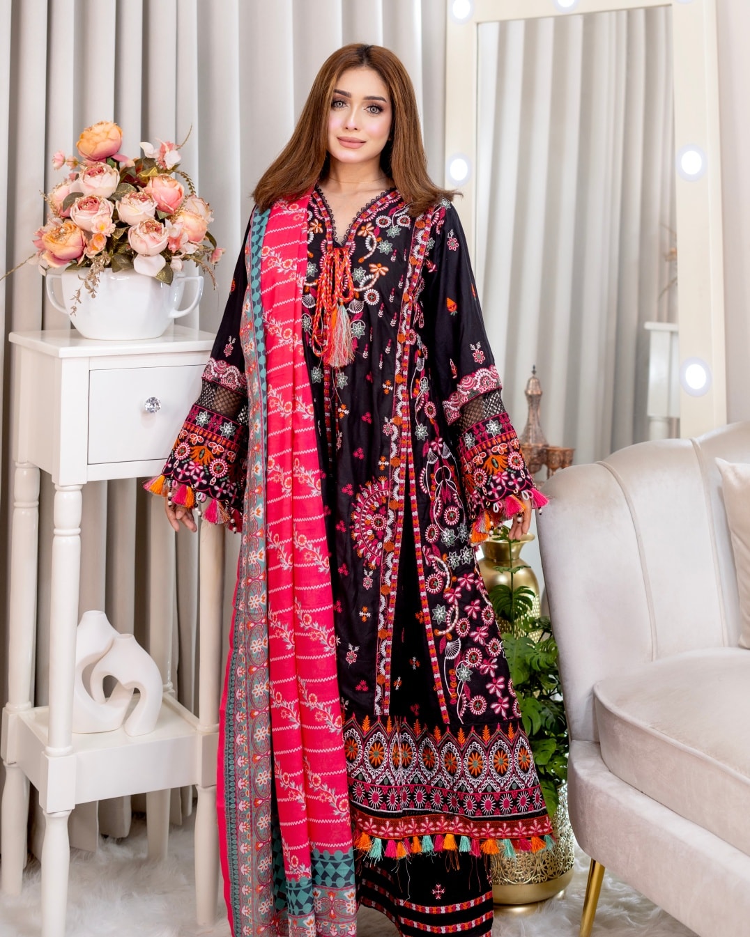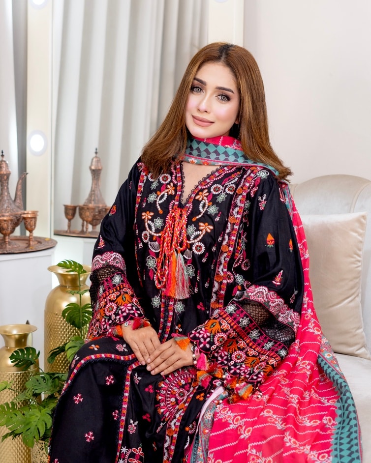 A stunning 3-piece set featuring elegant embroidery,designed to give you a graceful and timeless look.
