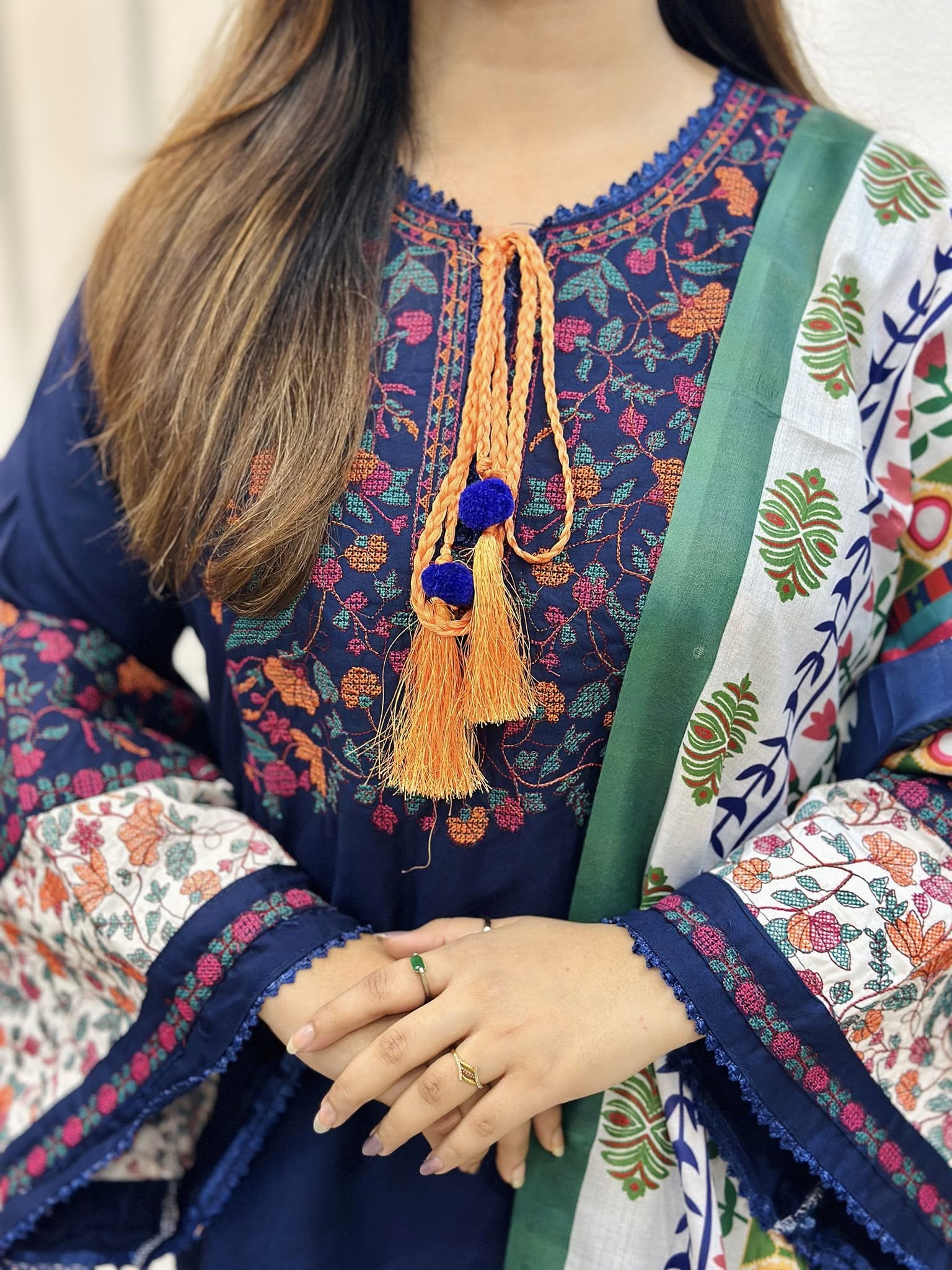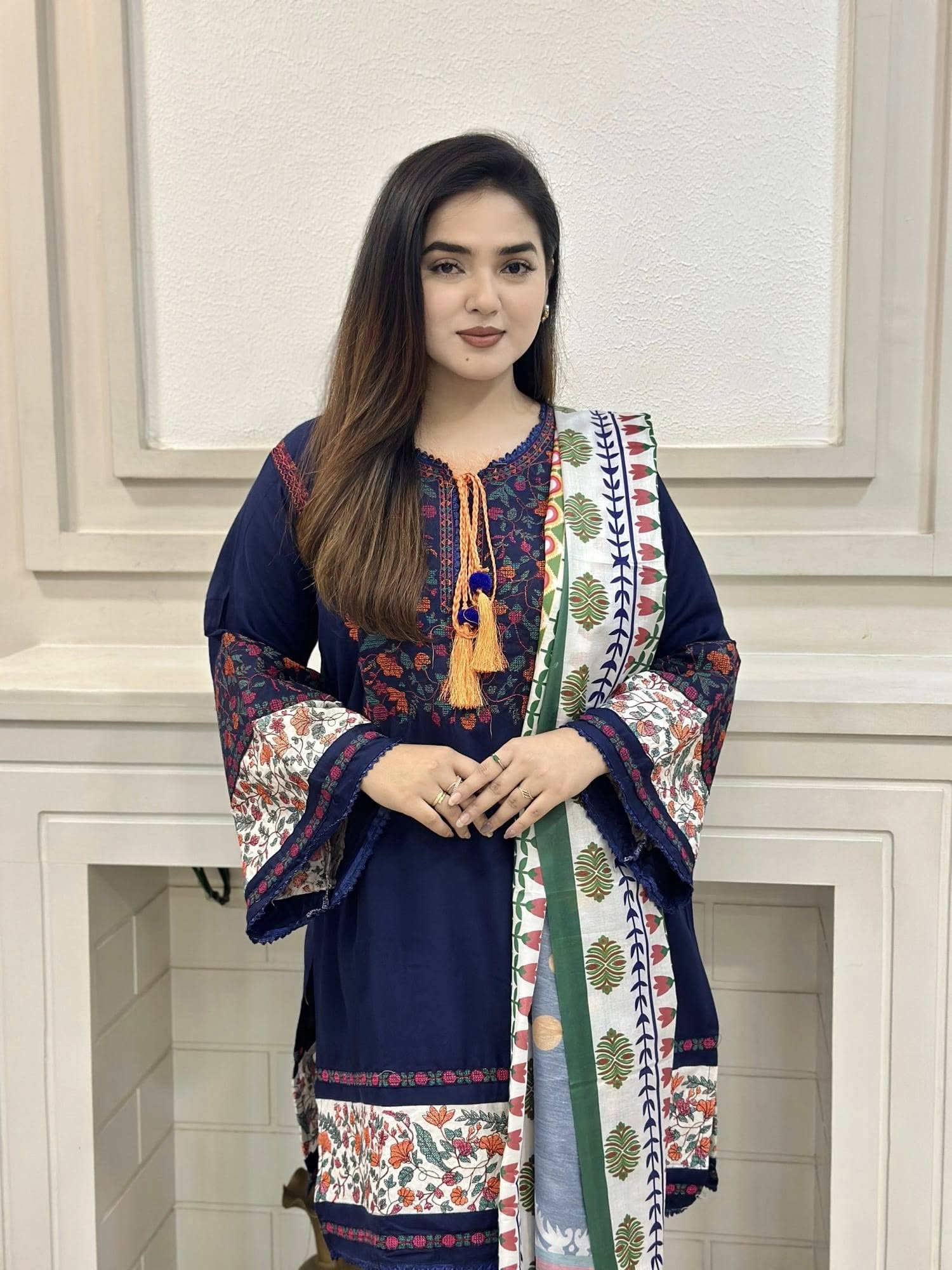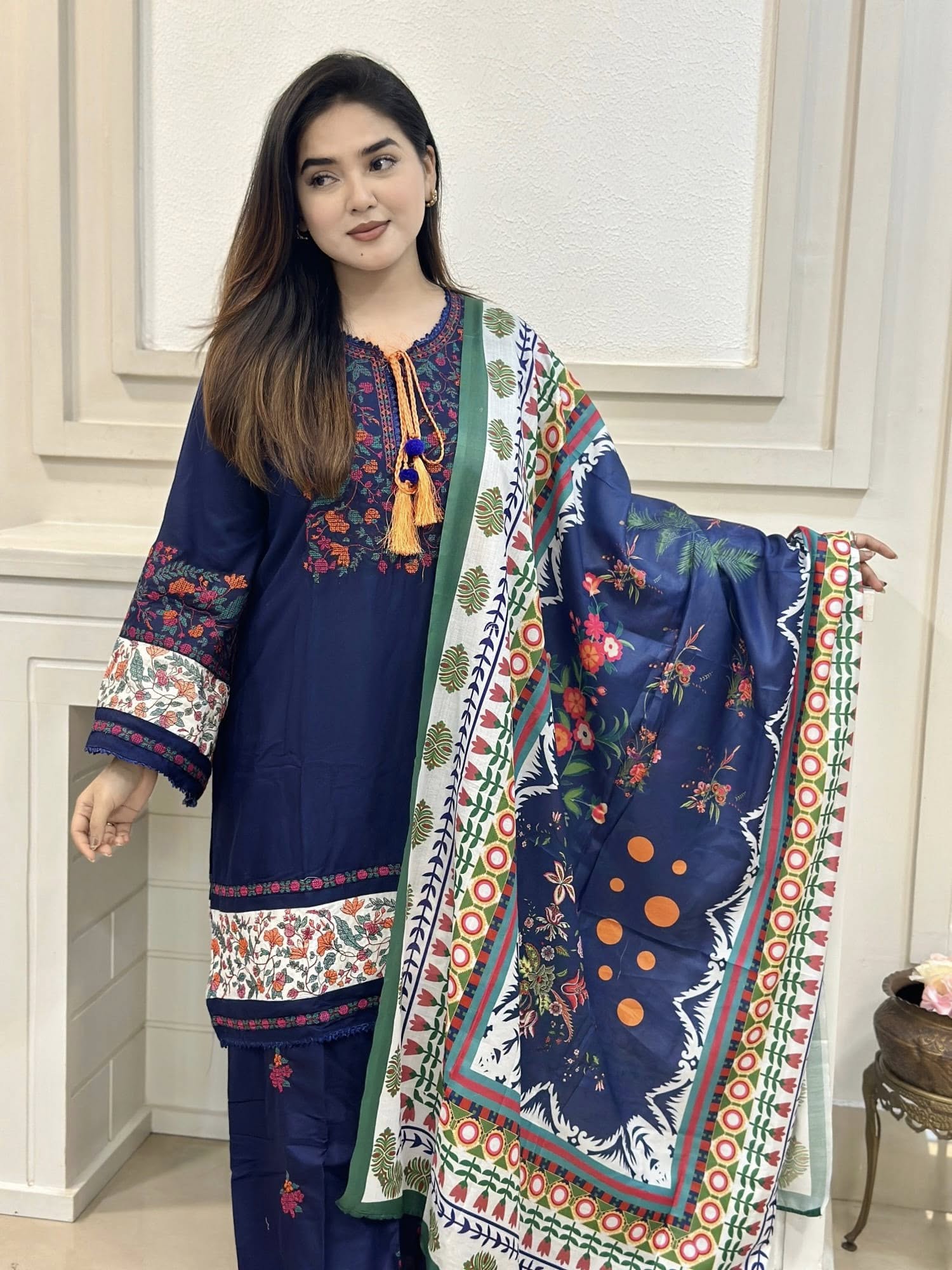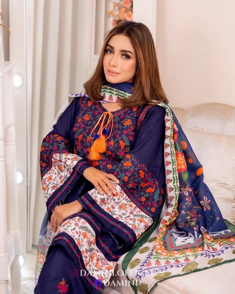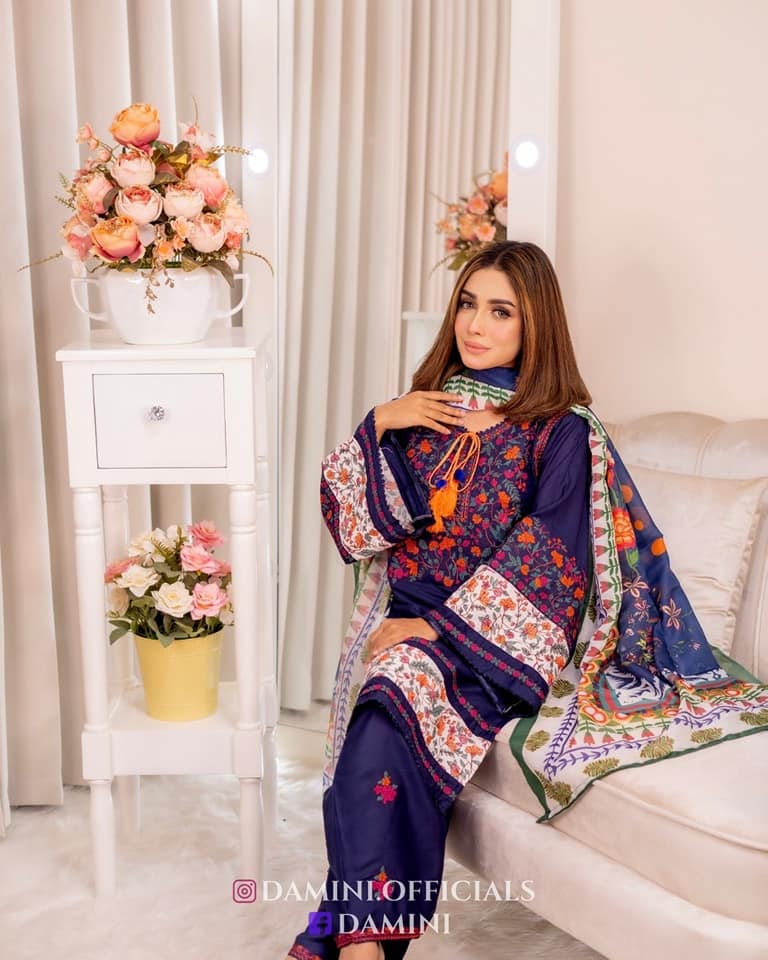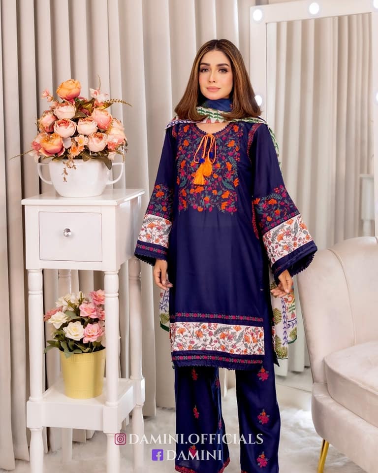 Jugnu Inspired Gorgeous Embroidery with Kamiz & Pant | Digital Print Dupatta B110